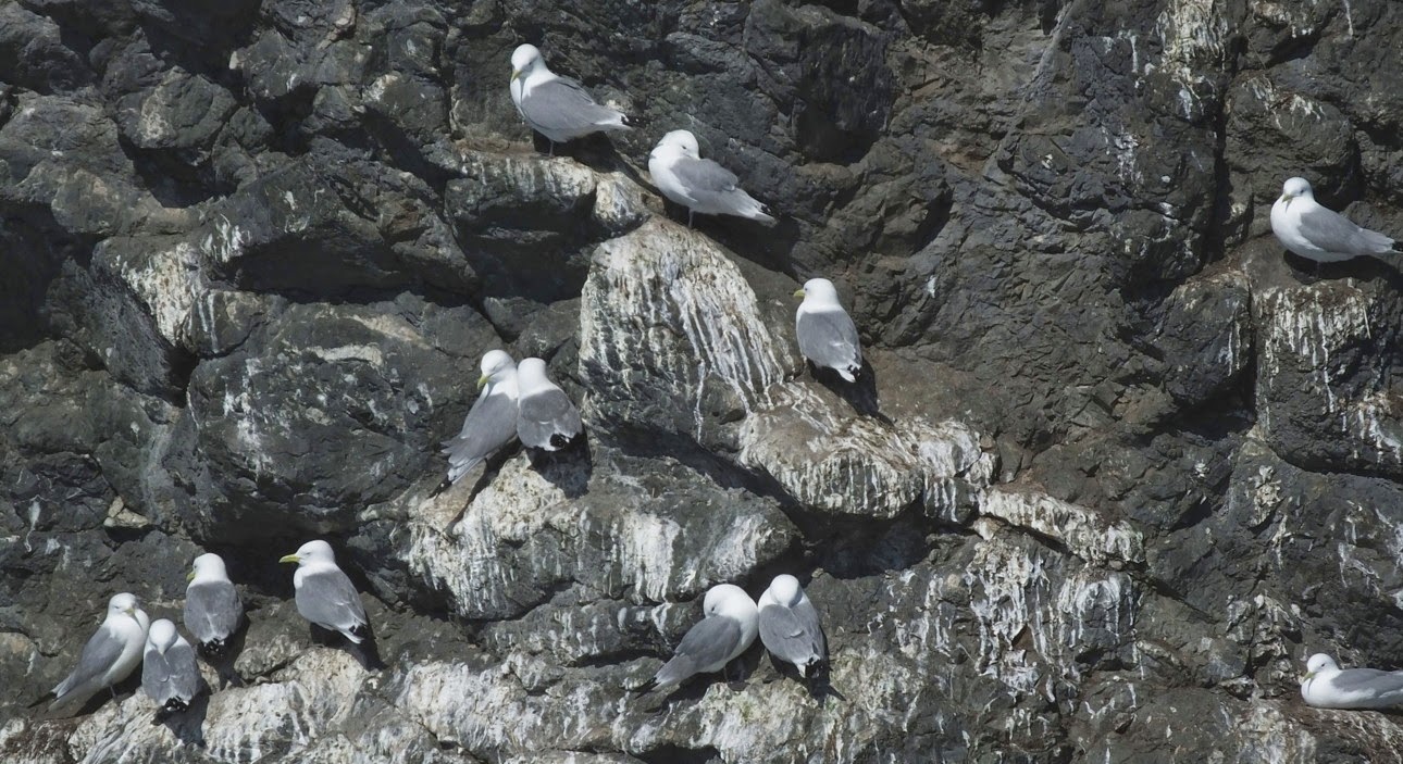 It will probably be a long, stressful Summer for these kittiwakes if they keep squabbling for space throughout the whole breeding season. Wait until there are growing chicks in the nests to take up even more precious room.